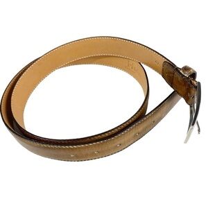 Stylish and durable burnished vintage brown leather belt with tonal stitching. Perfect for any occasion.