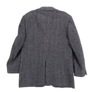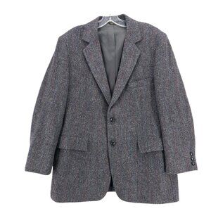 HARRIS TWEED Gray Herringbone Wool Blazer Sport Coat Red Blue Stripe Size 44R
