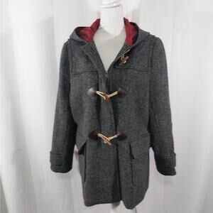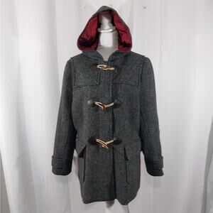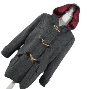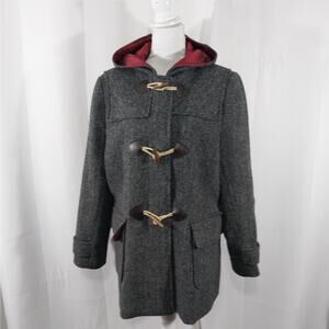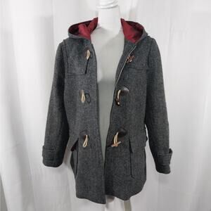 From Harris Tweed, certified 100% new wool by the Harris Tweed Authority, this coat, jacket is made in Great Britain! In a dove gray and ash gray herringbone weave, it features a hidden full zipper front with large toggles on the outside! Front pockets, full hood! Fully lined in a red paisley satin! A gorgeous coat, and so high end! Size 12, (GB Size 16), worn once! Like new! Excellent! Superb EUC Condition! **ABSOLUTELY GUARANTEED CONDITION: EUC MINTY-EXCELLENT TO LIKE-NEW, by Lily @HauteClub!***