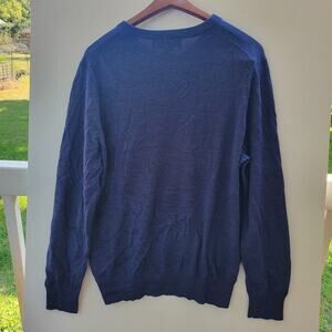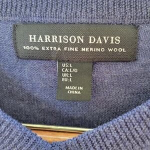 HARRISON DAVIS Mens Soft 100% Extra Fine Merino Wool V Neck Sweater L Blue