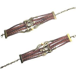 HARRY POTTER Bracelet Bronze Owls Wings Gold Pearl Deathly Hallows Charm