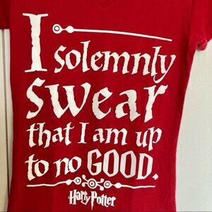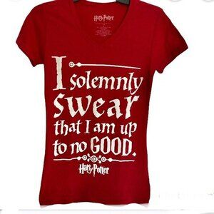 Harry Potter Red V-Neck T-Shirt Medium- I Solemnly Swear that I am Up to no GOOD
