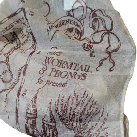 HARRY POTTER Semi Sheer Long Brown and Cream Colored Map Print Scarf.