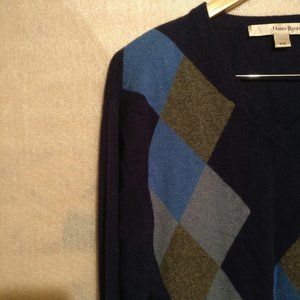 HARRY ROSEN Argyle Blue 100%CASHMERE Warm Pullover Sweater with Measurements L,