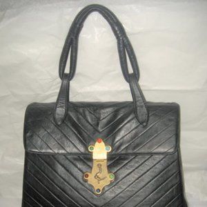 ❤️ HARRY ROSENFELD XL Black Soft Quilted V Leather Cabachon Top Handle Bag Purse