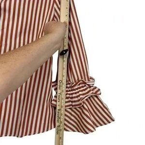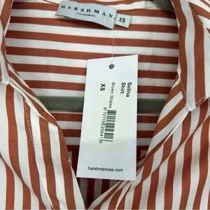 HARSHMAN SHIRT WOMEN’S XS BROWN STRIPED BUTTON DOWN FLARED SLEEVE COTTON NWT