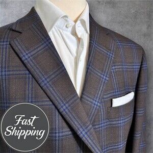 HART SHAFFNER MARX Mens Blazer 52R Sport Coat Jacket Brown/Blue Wool Windowpane