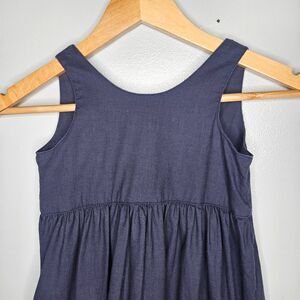 HARTSTRINGS Girls Dress Size 5 Linen Blend Blue Back Tie and Buttons Sleeveless