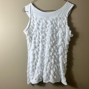 HARVE’ BENARD White Ruffle Tank Top Size Small Soft Girl Cottagecore Textured