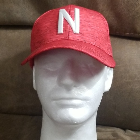 WHAT WE'VE GOT HERE IS A VERY NICE IN CONDITION A RED AND SILVER IN COLOR A BALL CAP MADE BY CAPTIVATING HEADGEAR FOR THE NEBRASKA CORNHUSKERS CAP..
