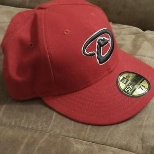 WHAT WE'VE GOT HERE IS A VERY NICE IN CONDITION A BURGUNDY AND BLACK IN COLOR. THE CAP IS MADE BY NEW ERA. ARIZONA DIAMONDBACKS BALL CAP..