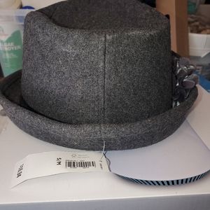 Children's hat, adorable, flannel, brand new. Charcoal gray with flower on side, satin lined.
