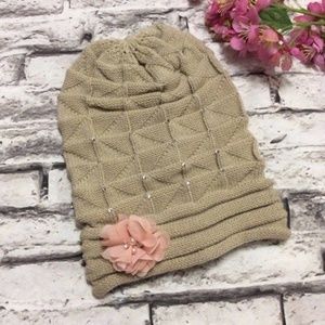 UNIQUE STYLES BOUTIQUE - New custom small tan ivory cover beanie pink flower floral bling diamond hat cute cap. 12" inches. Very BoHo chic hippie gypsy tribal casual emo retro Gothic hipster style. Spell & The Gypsy Collective For Love And Lemons Free People Cleobella Faithfull The Brand MISA Los Angeles Stone_Cold_Fox We Are Kindred Tularosa Maisie & The Muse Whitney Eve Desired Collection Saltwater Lush Alexia urban earthbound ** More styles or colors go to "brand" under "Unique Styles hat”