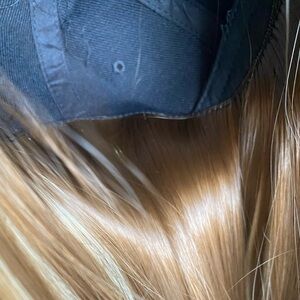 Enhance your look with this chic black cap featuring a sleek blonde & brown hair extension. Perfect for a quick style change, or a bad hair day. Casual, sporty, goth NWT attached to bag