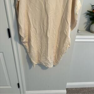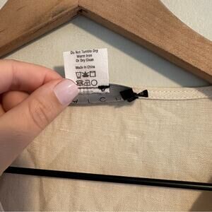 I love this super cute Hatch cream linen blend layered lagenlook short sleeve one size maternity mini dress