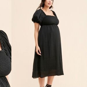 HATCH ELIA MIDI DRESS FLORAL SIZE 3 LARGE BLACK PUFF SLEEVE SMOCKED MATERNITY