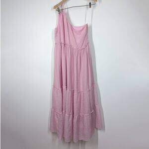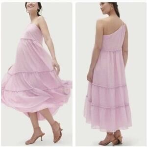 HATCH Joy One Shoulder Tiered Midi Dress Textured Lilac Pink Size 3 US 12 NWT