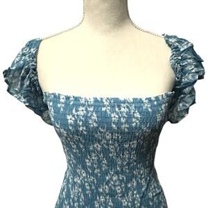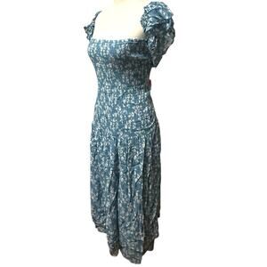 HATCH Maternity Cosette Smocked Midi Dress Blue Floral Size 2 (Medium)