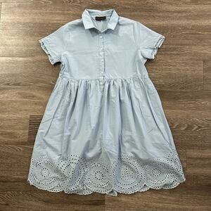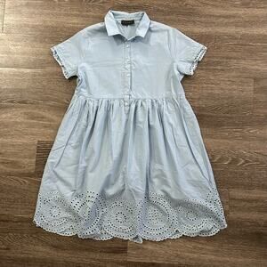 HATCH Maternity The Inez Eyelet Babydoll Shirt Dress Blue 100% Cotton 0 / XS EUC