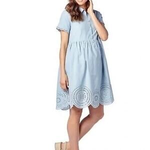 HATCH Maternity The Inez Eyelet Babydoll Shirt Dress Blue Cotton XS 0
