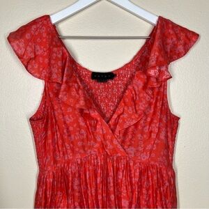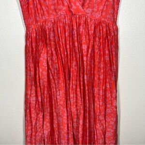HATCH Maternity Womens Floral Flutter Ruffle Smocked Midi Dress Silk Blend