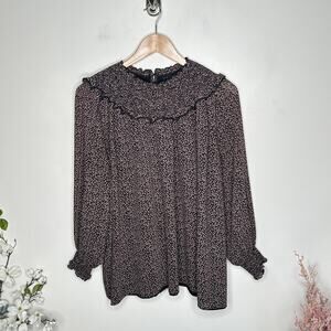 HATCH Mika Smocked Peasant Blouse Forest Ditsy Floral Black Sz 2 / Medium {UU13}