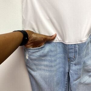 HATCH Over the Bump Maternity Flare Jeans Light Wash Stretch Distressed Size 26