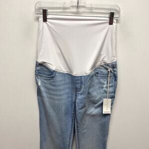 HATCH Over the Bump Maternity Flare Jeans Light Wash Distressed Size M