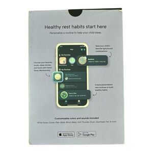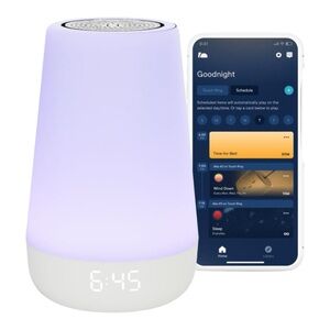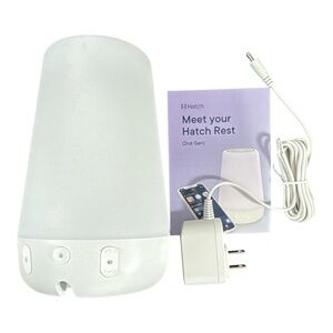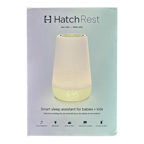 Hatch Rest 2nd Gen smart sleep assistant for babies and kids. Features a color changing nightlight, sleep sound machine and time to rise. Connects via WiFi and Smart app.