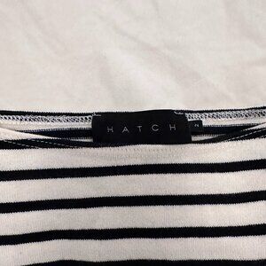 An effortless and versitile maternity staple that can be work before, during and after pregnancy. HATCH pullover, featuring a crisp two-tone stripe motif, a boat neckline, and dropped shoulder seams for a relaxed finish.