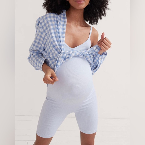 Our cult-favorite body rib unitard: shorts edition. Made in a super fine, super buttery soft rib knit for extra compression, this one and done wonder is designed to grow with you—and can stretch up to 2x its size. Perfect for now, when you can't see your toes, and long after baby.