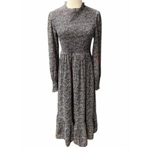 • Features: Smocked bodice, long sleeves, high neckline, hidden back button closure, fully lined