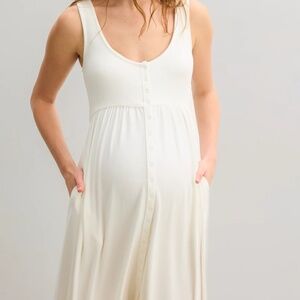 HATCH The Softest Ribbed Nursing Tank Dress - Cream, Size 3 (~Large)