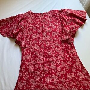 HATCH red floral border print flutter v neck short sleeve mini dress