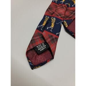 The tie sports a tartan style and a golfer pattern that's both versatile and on-brand for the golf enthusiast. It's a piece that effortlessly complements a range of outfits, whether you're dressing up for the office or a casual day out. Made in the USA, it's a testament to quality craftsmanship and enduring design. Note: Please see photos for condition details.