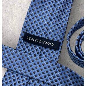 HATHAWAY Silk Tie XL Blue Brown Geometric W:3.6" EUC