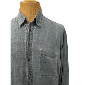 HAUPT Men's Long Sleeve Dress Shirt Washed Soft Denim Size XL - 17 1/2 43/44