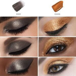 GLAM ATTACK LIQUID SHIMMER POWDER in Biker (Gunmetal with Silver Pearl) & GLAM ATTACK METALLIC CRÈME in Chains (Metallic Bronze)