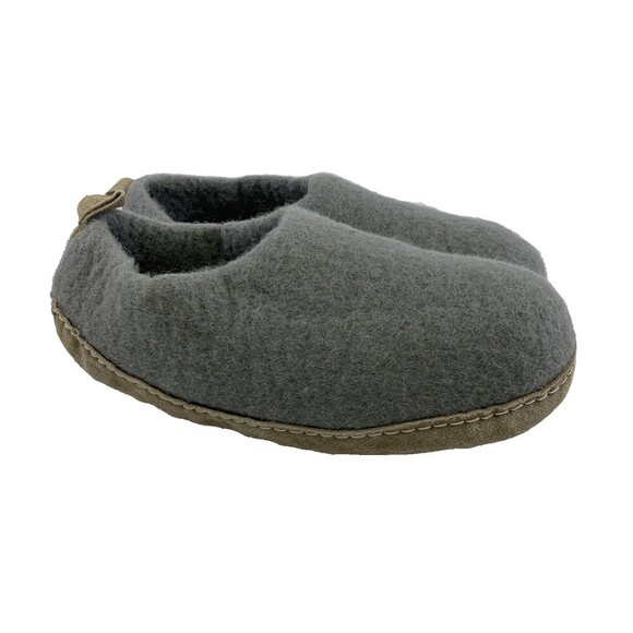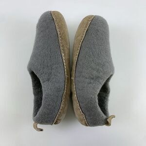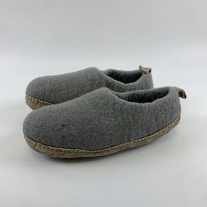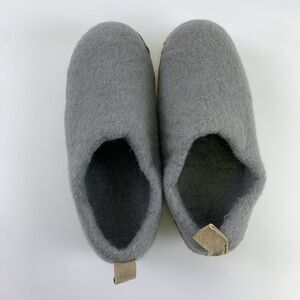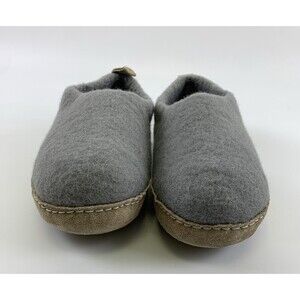 HAUSSIMPLE Natural Wool Cozy Indoor Slip On Slippers Gray Leather Sole Womens 10