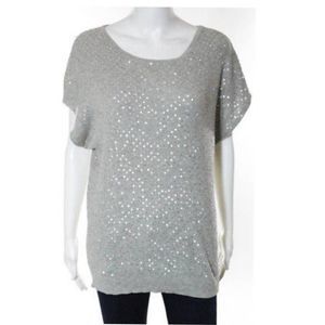 HAUTE HIPPIE GRAY SILK PULL OVER SEQUIN DETAIL SCOOP NECK BLOUSE EXTRA SMALL