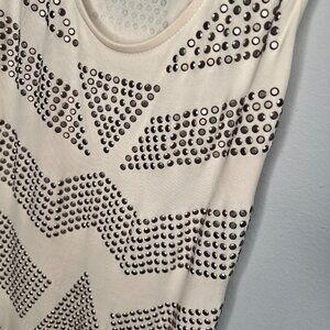HAUTE HIPPIE Ivory Cream Metal Studded Sleeveless Midi Dress Bodycon Size Small
