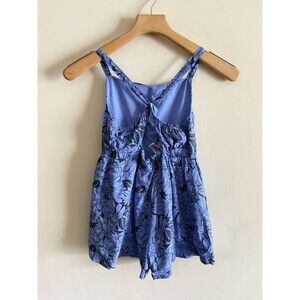 HAUTE HIPPIE KIDS 100% RAYON, FLORAL BLUE Bubble ROMPER SIZE MEDIUM 7-8 Girls