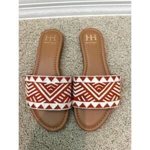 HAUTE HIPPIE | Rust & White Geometric Slide Sandals Boho | Size 8