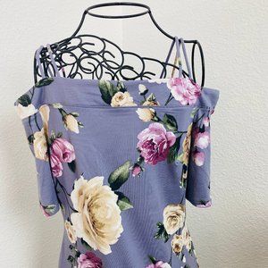HAUTE MONDE Cold Shoulder Floral Bodycon Dress Medium size women's very stretchy and cute lavender color