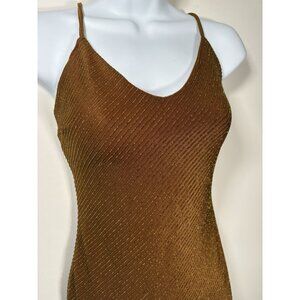 HAUTE MONDE Copper Gold Brown Spaghetti Strap Bodycon Party Dress NYE Size Small