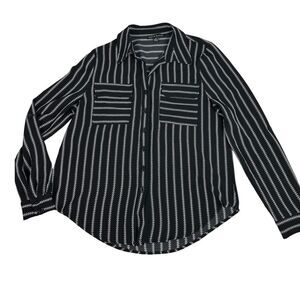 HAUTE MONDE Women’s Blouse Small Button Front Long Sleeve Stripe