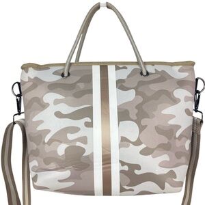 HAUTE SHORE Neoprene Crossbody Tote in Sahara Beige Camo
