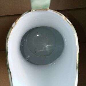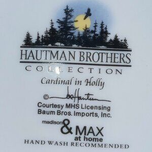 This beautiful pitcher by Hautman Brothers is a must-have for any collector or lover of ceramics. The colorful design features a cardinal in a holly pattern that is sure to add a touch of whimsy to any home. Measuring at 10.5 inches, this 10 1/2 inch pitcher is perfect for serving up your favorite beverages or displaying as a decorative piece. Crafted from high-quality ceramic and porcelain materials, this pitcher is durable and long-lasting. Whether you're using it for special occasions or as an everyday item, this pitcher is sure to impress. Add a touch of elegance to your home with this stunning Hautman Brothers pitcher.