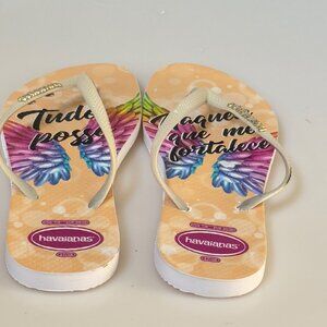 HAVAIANAS Women's Flip Flops Angel Wing Design Beige Multi-Color SizeUS 8/L