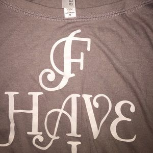 Super comfy! Polyester and viscose!! HAVE FAITH CROSS DESIGN- 3/4 sleeve- from inspirational positive shirts Words To Live By apparel - brand new never worn--- sold in stOres